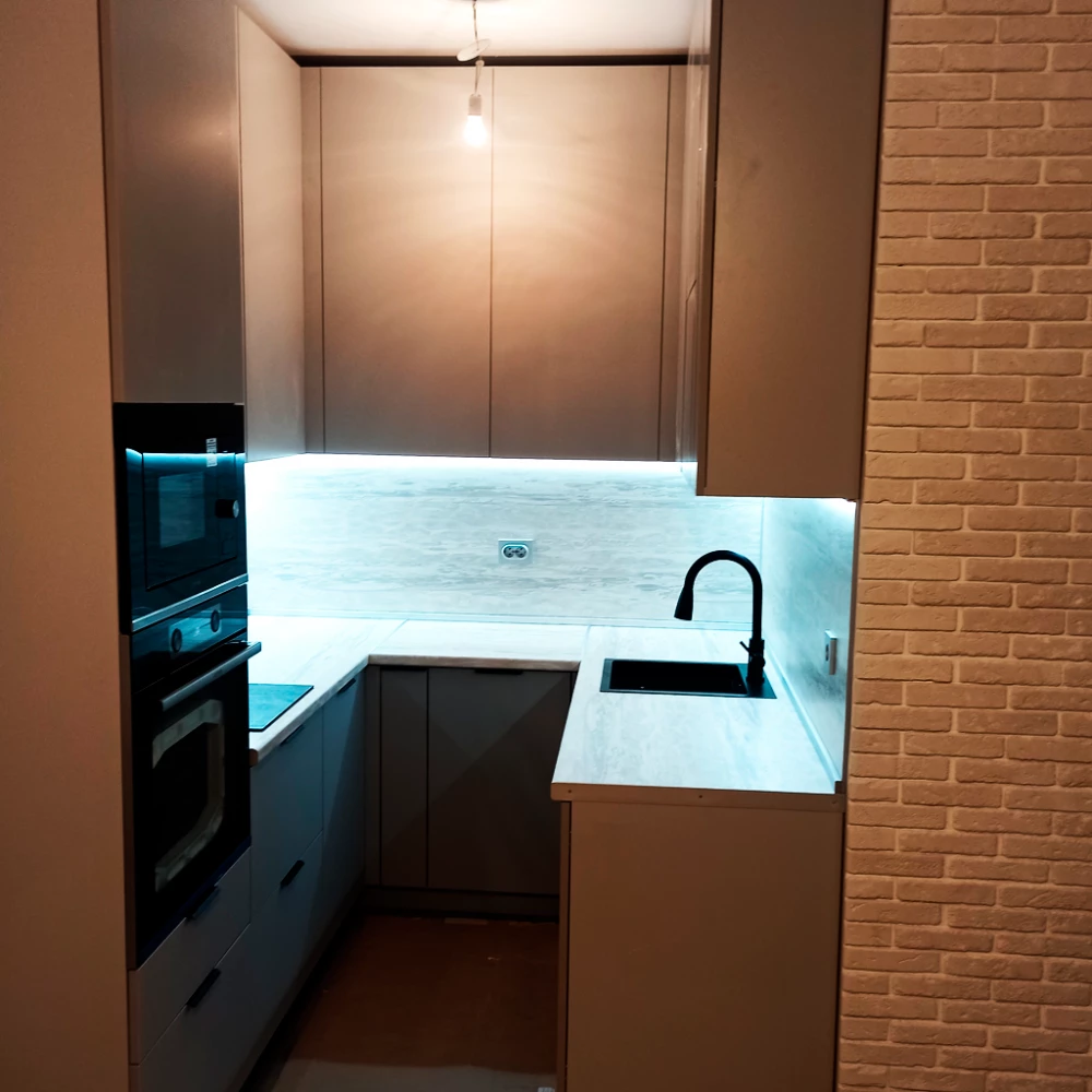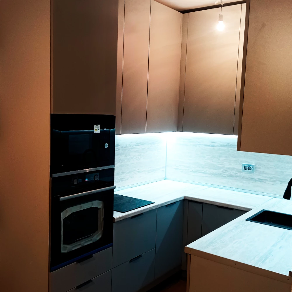 Реализован сложный и эффектный проект П-образной кухни, выполненный по настоянию клиента, несмотря на наши рекомендации рассмотреть более эргономичные угловые решения. Этот кейс — пример того, как мы воплощаем даже самые смелые пожелания, находя оптимальные конструктивные решения для нестандартных планировок. Результатом стала величественная и стильная кухня с безупречными фасадами.