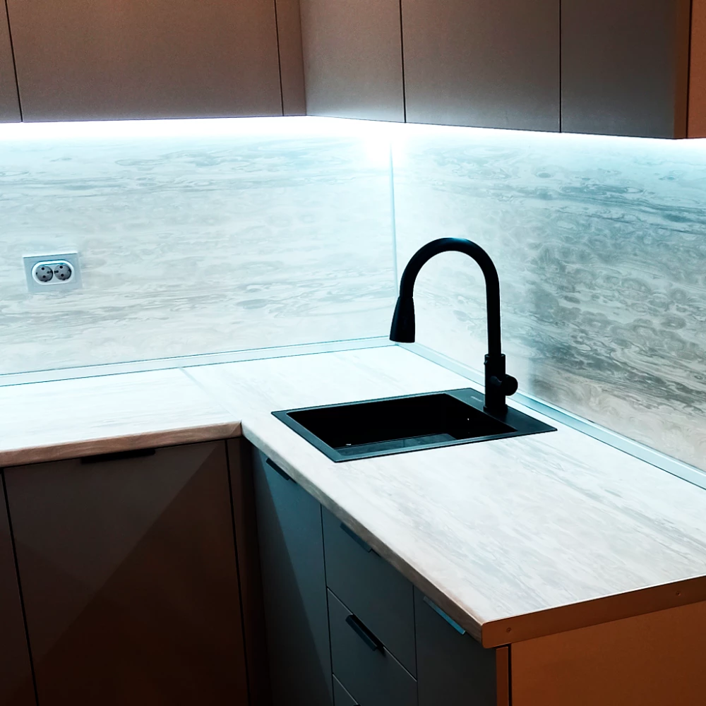 - Премиальная стойкость: Поверхность устойчива к влаге, нагреву и царапинам, что гарантирует безупречный вид на долгие годы.