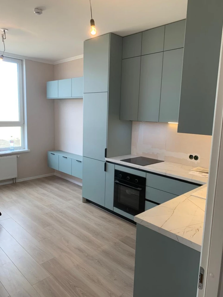 - Фасады: МДФ, покрытый высококачественной пленкой ПВХ «16524 Мэджик Оазис». Пленка создает спокойный глубокий тон с легким перламутровым эффектом.
